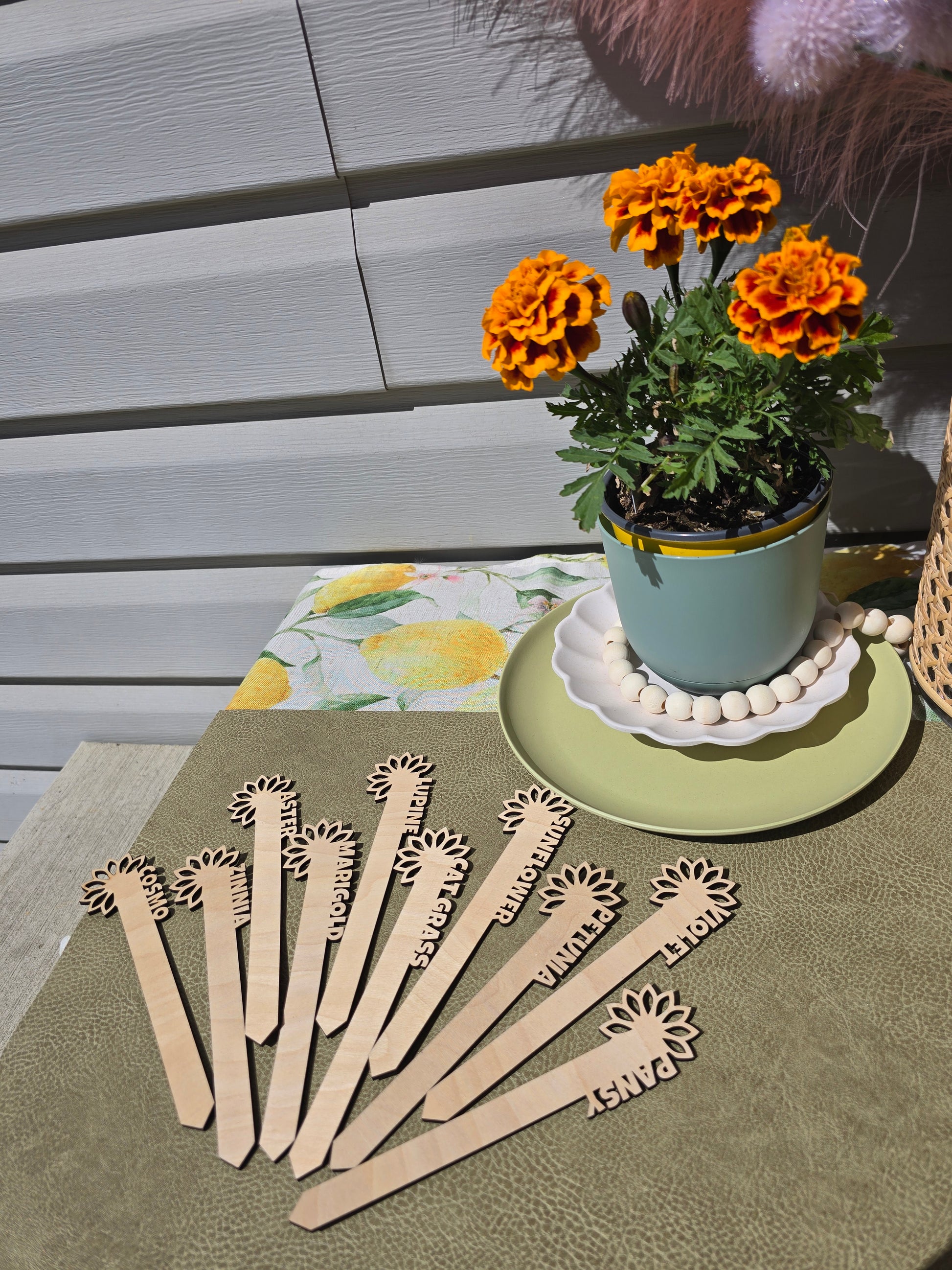 This set includes 10 Baltic Birch flower markers featuring assorted flower varieties, accompanied by one self-watering planter. Each marker is precision-crafted to provide elegant garden organization. Complementary seed packets included. Perfect as a thoughtful housewarming gift or personal indulgence for the discerning gardener who appreciates both functionality and aesthetic appeal in their planting accessories.